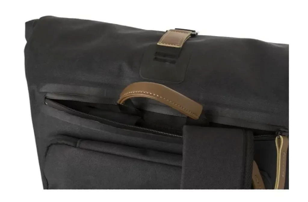 100% coton organique imperméable à l’eau, sac à vélo et sac à dos avec bandoulière réglable, fermeture magnétique à enroulement, compartiment intérieur pour ordinateur portable.