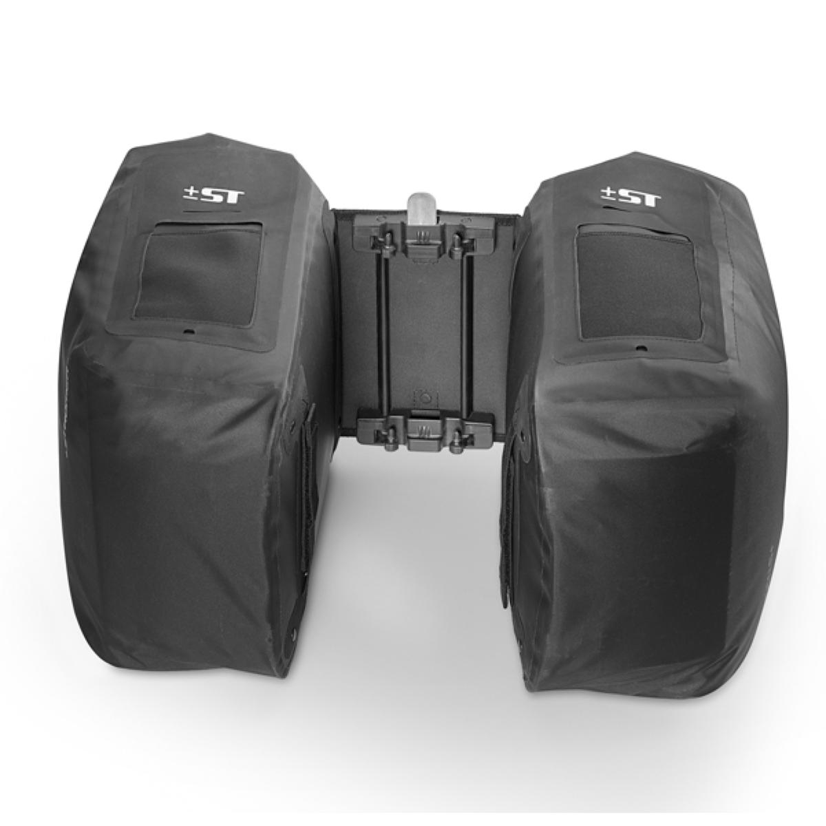 Sacoches étanches à l’eau, fermeture par sangle, réfléchissantes sur les deux côtés. Avec adaptateur Snapit Racktime pour une fixation rapide et simple sur le porte-bagage.